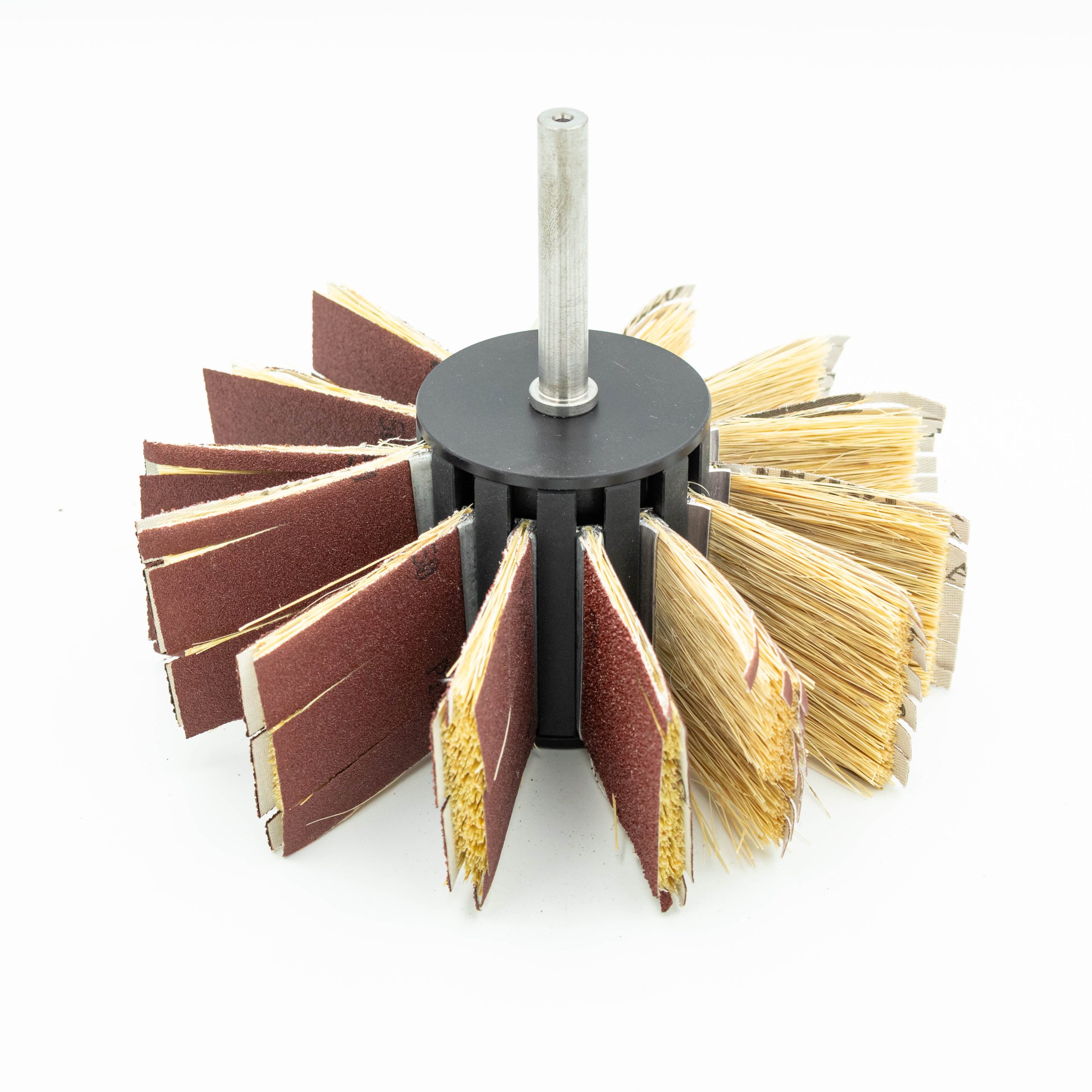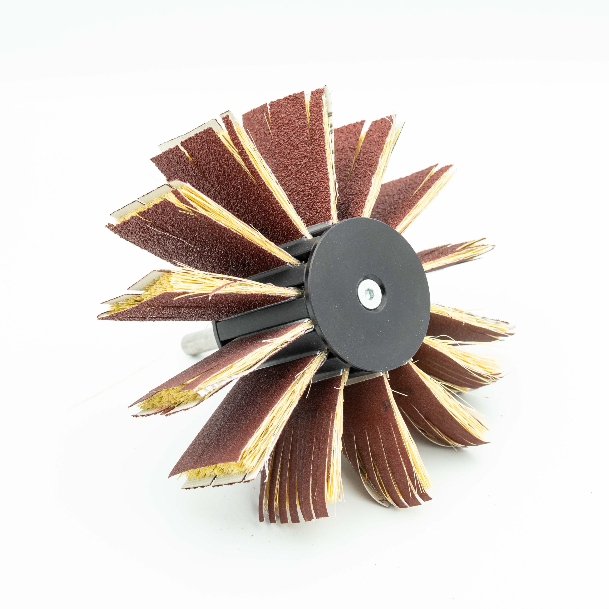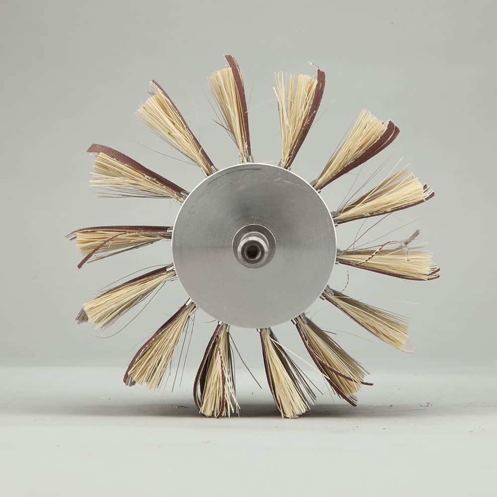 Głowica szlifierska walcowa z systemem wymiennych szczotek szlifujących, idealnie nadaje się do obróbki płaszczyzn oraz elementów o nieregularnych kształtach. Dzięki zastosowaniu odpowiedniego płótna ściernego o odpowiedniej twardości szczotki dedykowane do głowicy walcowej bardzo dobrze dostosowują się do obrabianego materiału co daje pewność idealnego wykończenia powierzchni.